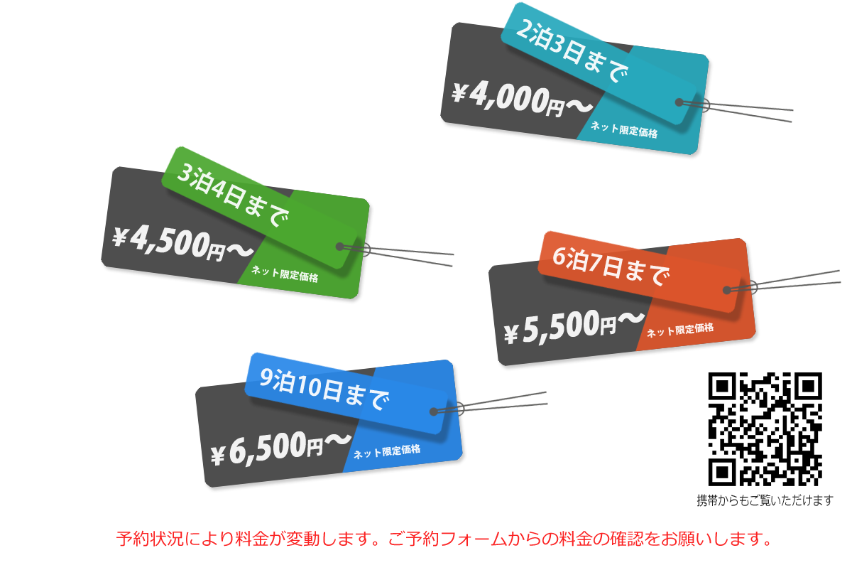 10泊以上の長期ご利用のお客様は電話にてお問い合わせ下さい。